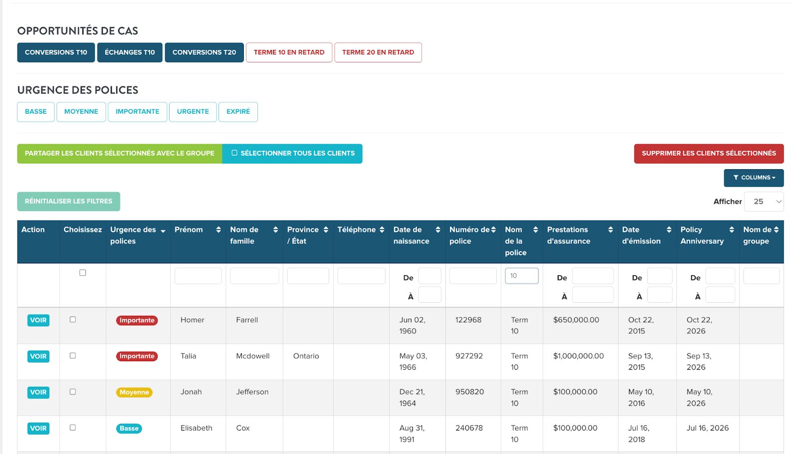 Tout ce que nous proposons comme filtre inclut également une notification intégrée. Pour les opportunités de renouvellement des T-10, à partir du septième anniversaire de la police, LDA envoie automatiquement une notification pour vous informer de cette opportunité de renouvellement. Ces notifications se poursuivent chaque année à l’anniversaire de la police, jusqu’à 90 jours avant le renouvellement. Aucune action n’est requise pour activer ces alertes.