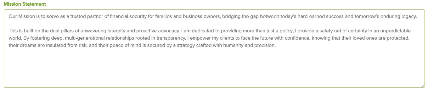 Edit your "Mission Statement" in your account settings. It automatically embeds your value proposition and service standards into every report, ensuring the client knows exactly what to expect from the start.