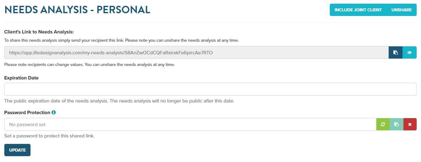 Use the Sharable Needs Analysis link. Send it to your client before your meeting to let them populate their own assets and liabilities. This doesn't just save time—it creates "buy-in" because the data is coming directly from the client.